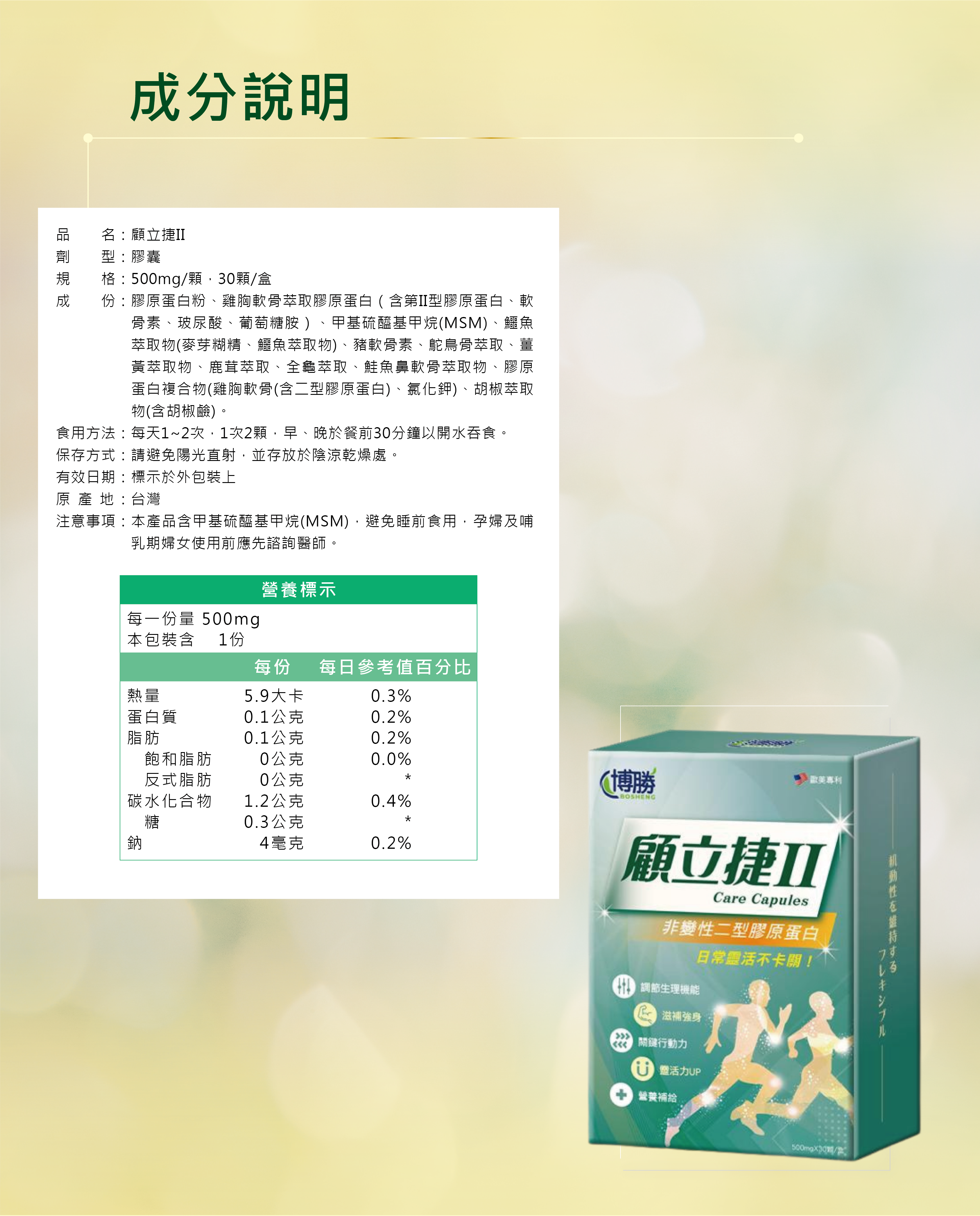 添加專利非變性二型膠原蛋白,